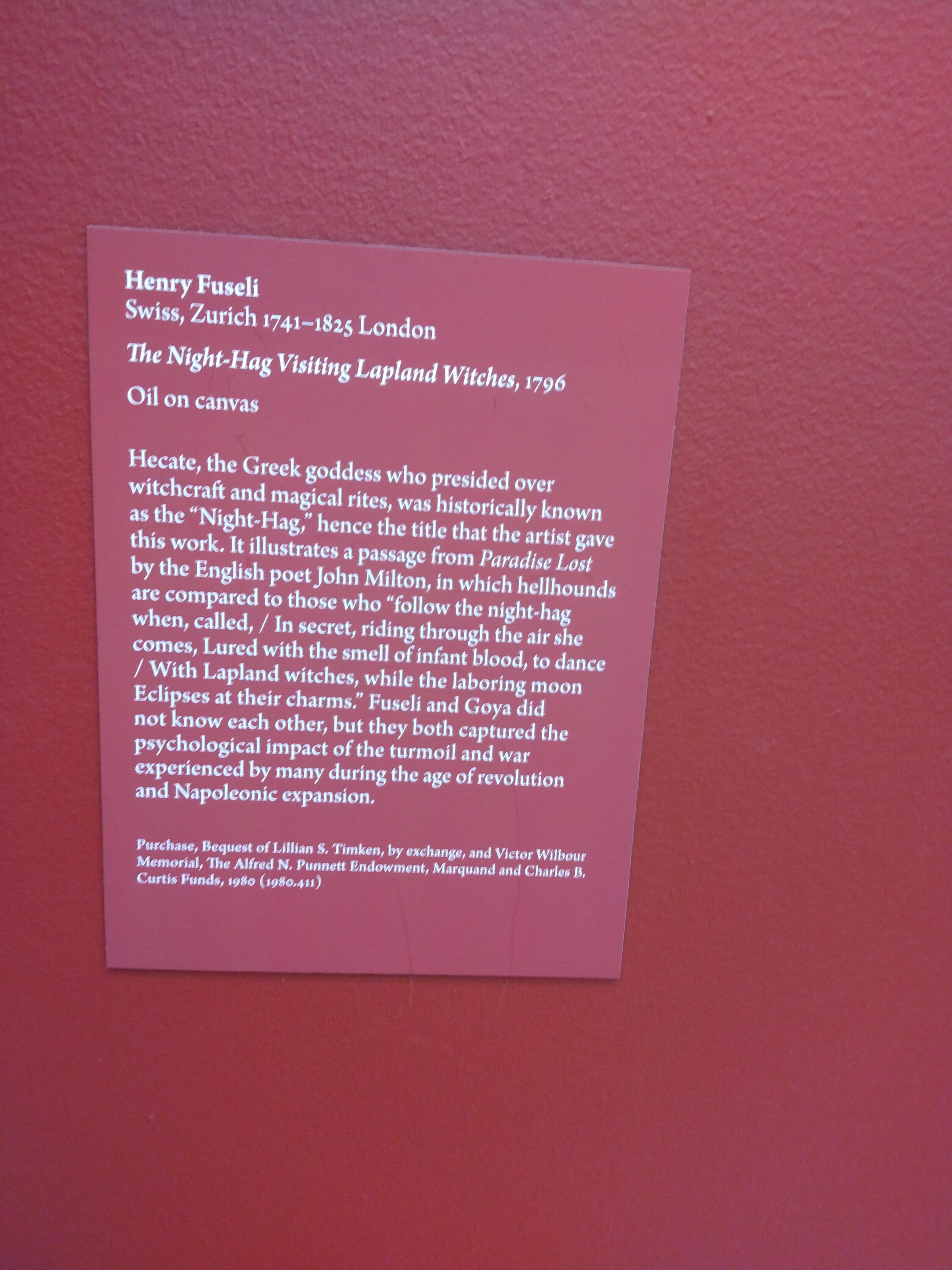 Gallery 641: Metropolitan Museum of Art, 1000 Fifth Avenue between East 80th & 84th Streets; paintings by Francisco de Goya y Lucientes, Henry Fuseli, Style of Goya